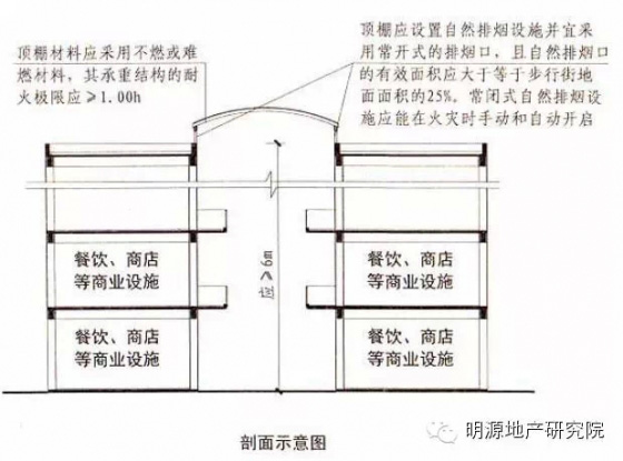 3.步行街的端部在各層均不宜封閉,確需封閉時(shí),應(yīng)在外墻上設(shè)置可開(kāi)啟的門窗,且可開(kāi)啟門窗的面積不應(yīng)小于該部位外墻面積的一半。