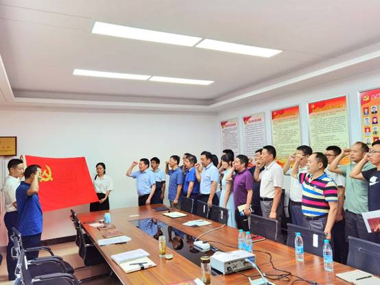 最后,全體黨員面對(duì)鮮紅的中國(guó)共產(chǎn)黨黨旗,莊嚴(yán)地舉起右手,握緊拳頭,集體宣讀入黨誓詞,重溫入黨時(shí)的莊嚴(yán)承諾和堅(jiān)定決心。紛紛表示,要不斷提高黨性修養(yǎng),堅(jiān)定理想信念,自覺(jué)踐行黨的宗旨,充分發(fā)揮先鋒模范作用,切實(shí)把初心使命變成銳意進(jìn)取、開拓創(chuàng)新的精氣神和埋頭苦干、真抓實(shí)干的自覺(jué)行動(dòng),以優(yōu)異的成績(jī)向建黨99周年獻(xiàn)禮。