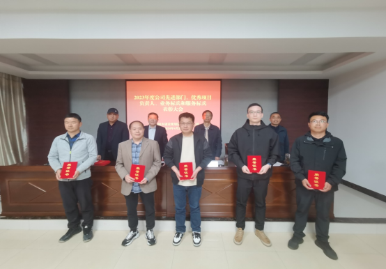根據(jù)會議議程,公司董事、副總經(jīng)理王士才同志宣讀了《關于表彰2023年度公司先進部門、優(yōu)秀項目負責人、業(yè)務標兵和服務標兵的決定》,公司領導給獲得表彰的先進部門、優(yōu)秀項目負責人、業(yè)務標兵和服務標兵頒發(fā)獎牌和獲獎證書。